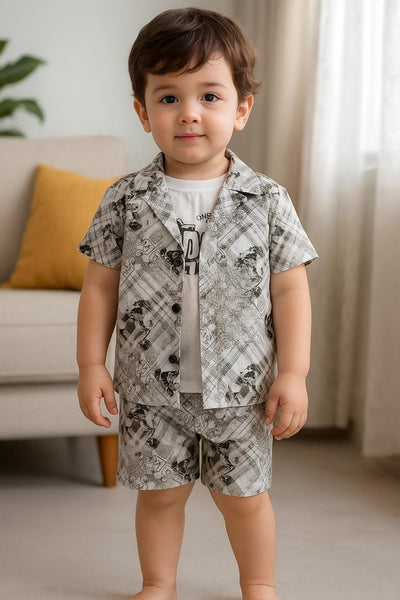 short-sleeved, button-up shirt with a relaxed fit